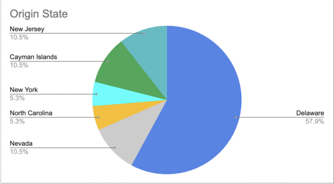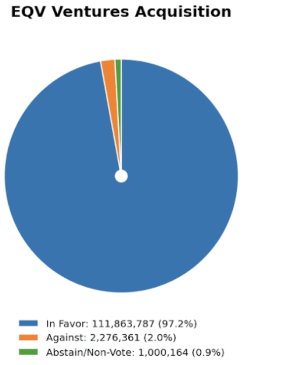 Part of the reason for doing these infographics around vote results is to make it easier to see if there are significant voting differences depending on the destination jurisdiction. Both LQR House and EQV Ventures had Delaware as the target jurisdiction and attracted little opposition. I think that reflects a lot of institutional investor comfort with Delaware as a default still.